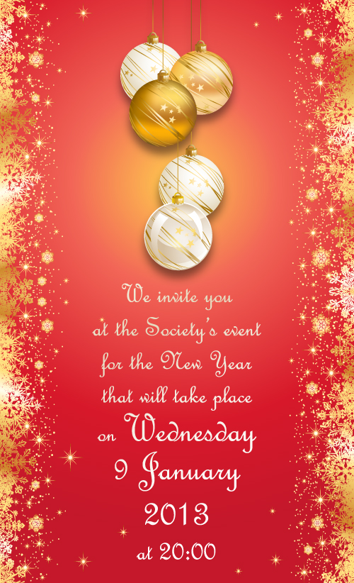 Members and friends of the Society we will all gather together to celebrate the New Year on Wednesday 9 January at 20:00.