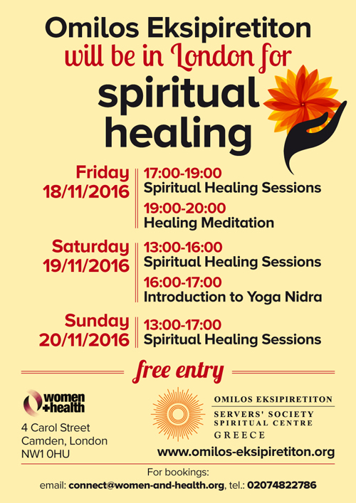 Omilos will be at Women & Health for three days to offer spiritual healing and healing meditation. Join us on 18-20 November 2016!