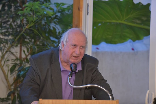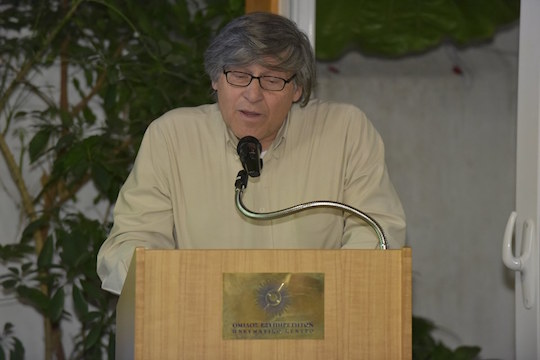 The pulsating recitations by the poetesses Ms Faidra Zampatha and Ms Martha Papadopoulou enlivened his word, and Ms Ioulia Siavraka, translator – member of our Literary Workshop, attired him with images by making a video of one of his poems.