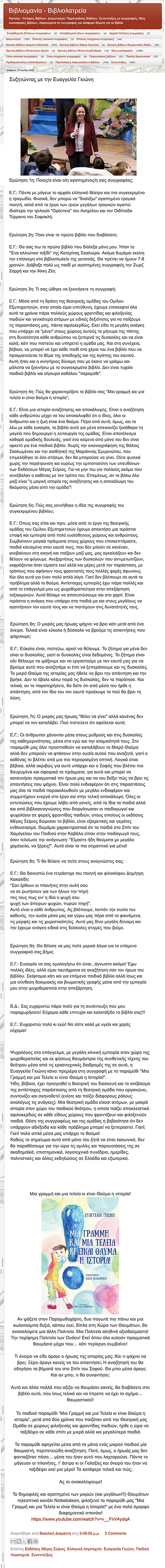 Interview of the author of our first fairy tale “A line and a dot and a miracle on the spot!” Evangelia Gkioni in the blog “vivliomania – vibliolatreia”